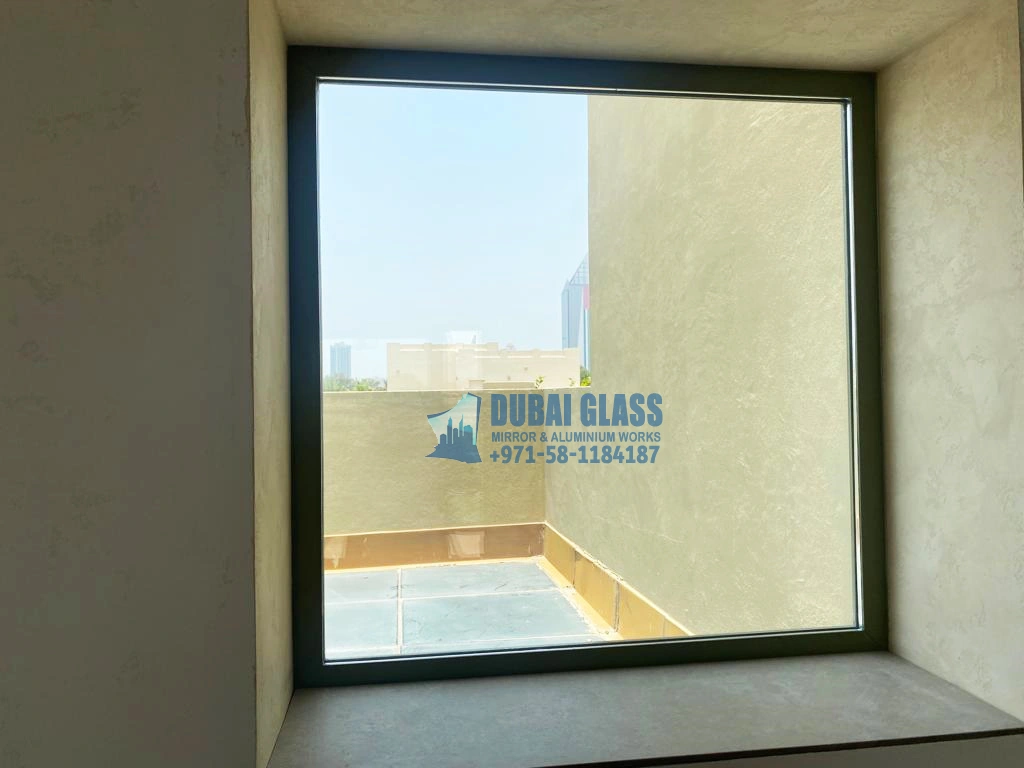 Fixed aluminium frame window in Dubai, installed by Dubai Glass Works. Durable and modern design for residential and commercial spaces. Call +971-58-1184187.